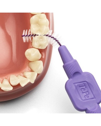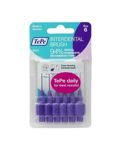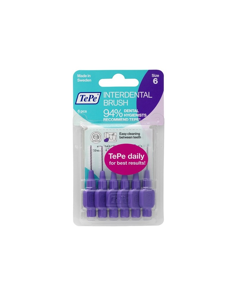 Міжзубні щітки TePe #1 в міжзубному чищенні, рекомендовані стоматологами у 80+ країнах світу! Найдієвіший і найефективніший засіб для очищення міжзубних проміжків від зубного нальоту, що запобігає захворюванню ясен, карієсу і неприємному запаху з рота. Гнучкі, але міцні стержні міжзубних щіток мають спеціальне захисне пластикове покриття, яке сприяє безпечному та комфортному застосуванню без травмування ясен та пошкодженню зубної емалі. Використовуйте щодня, перед чищенням зубною щіткою. Обережним рухом введіть щітку в міжзубний проміжок і витягніть її, промийте під протічною водою. Зігніть робочу частину на палець для очищення задніх зубів. Повторіть процедуру у зоні всіх міжзубних проміжків. Для кращого доступу у зони задніх зубів використовуйте захисний ковпачок як подовжувач ручки.
