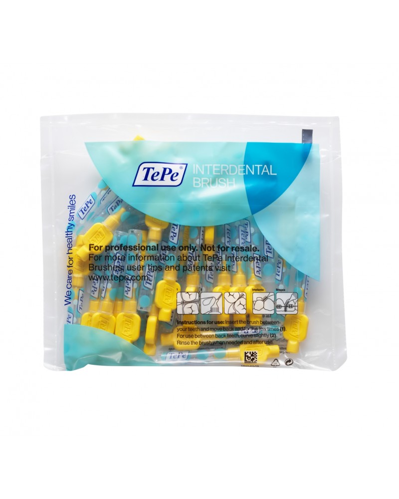 Міжзубні щітки TePe #1 в міжзубному чищенні, рекомендовані стоматологами у 80+ країнах світу! Найдієвіший і найефективніший засіб для очищення міжзубних проміжків від зубного нальоту, що запобігає захворюванню ясен, карієсу і неприємному запаху з рота. Гнучкі, але міцні стержні міжзубних щіток мають спеціальне захисне пластикове покриття, яке сприяє безпечному та комфортному застосуванню без травмування ясен та пошкодженню зубної емалі. Використовуйте щодня, перед чищенням зубною щіткою. Обережним рухом введіть щітку в міжзубний проміжок і витягніть її, промийте під протічною водою. Зігніть робочу частину на палець для очищення задніх зубів. Повторіть процедуру у зоні всіх міжзубних проміжків. Для кращого доступу у зони задніх зубів використовуйте захисний ковпачок як подовжувач ручки.