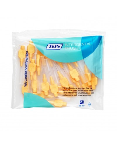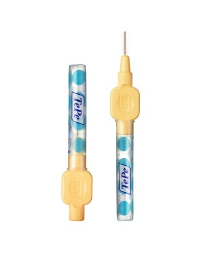 Міжзубні щітки TePe #1 в міжзубному чищенні, рекомендовані стоматологами у 80+ країнах світу! Найдієвіший і найефективніший засіб для очищення міжзубних проміжків від зубного нальоту, що запобігає захворюванню ясен, карієсу і неприємному запаху з рота. Гнучкі, але міцні стержні міжзубних щіток мають спеціальне захисне пластикове покриття, яке сприяє безпечному та комфортному застосуванню без травмування ясен та пошкодженню зубної емалі. Використовуйте щодня, перед чищенням зубною щіткою, щоб зберегти ясна і зуби здоровими і свіжими. Міжзубні щітки TePe Extra Soft рекомендовані при чутливості і захворюванні ясен, після хірургії ротової порожнини. Обережним рухом введіть щітку в міжзубний проміжок і витягніть її, промийте під протічною водою. Зігніть робочу частину на палець для очищення задніх зубів. Повторіть процедуру у зоні всіх міжзубних проміжків. Для кращого доступу у зони задніх зубів використовуйте захисний ковпачок як подовжувач ручки.