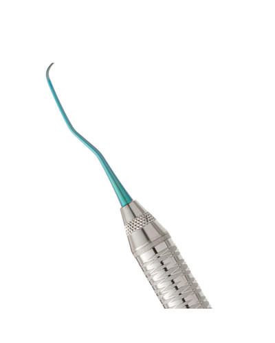 Кюрета титанова двостороння по догляду за імплантатами. Виготовлена з того ж титанового сплаву що й імплантати та абатменти. Рекомендовано для видалення зубних відкладень та біоплівки і використовується як над так і під'ясенно. Рекомендовано для скейлінгу у глибоких та вузьких пародонтальних кишенях за рахунок коротших, тонших лез із довшими термінальними стрижнями.