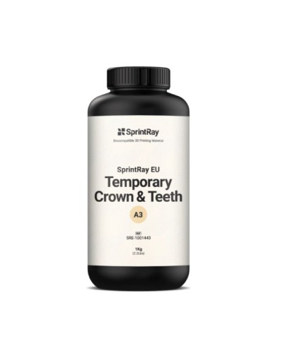 "Серія смол для коронок і зубів SprintRay є біосумісними смолами для тимчасових коронок і мостів, а також для тимчасового використання в фронтальній частині. Матеріал SprintRay також чудово підходить для довгострокових тимчасових протезів завдяки своїм властивостям. Ідеально підходить для: Довгострокові тимчасові Зубні протези Швидке виготовлення ортопедії" Колір A3, вага 1 кг.