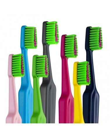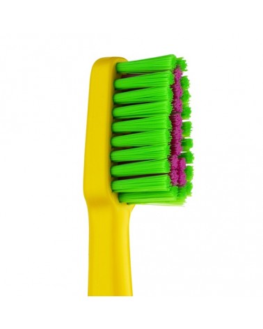 Шведська зубна щітка TePe Colour Compact з яскравими і ультрам'якими ворсинками в 1 рівень ефективна в очищенні від зубного нальоту. Завдяки конічній формі голівки маленького компактного розміру забезпечує доступ вглиб ротової порожнини і ретельне чищення важкодоступних ділянок. Рекомендована для людей із рвотним рефлексом, маленькою ротовою порожниною, з обмеженою можливістю відриття рота. Розмістіть щітку під кутом 45 градусів до лінії ясен, легко натисніть і обертовими круговими рухами почистіть спочатку зуби зі сторони язика, потім зі сторони щік і завершіть очищення жувальною поверхнею зубів. Змінюйте зубну щітку кожні 3 місяці.