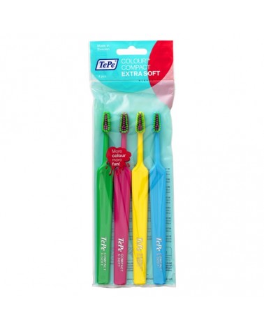 Зубна щітка TePe Colour Compact Extra Soft, ультрам'яка, 4 шт.